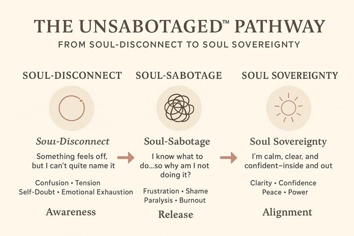 It is a structured 7-week journey built on the proprietary Unsabotaged™ Pathway—a clear, intentional process that guides you from internal conflict to internal sovereignty.
